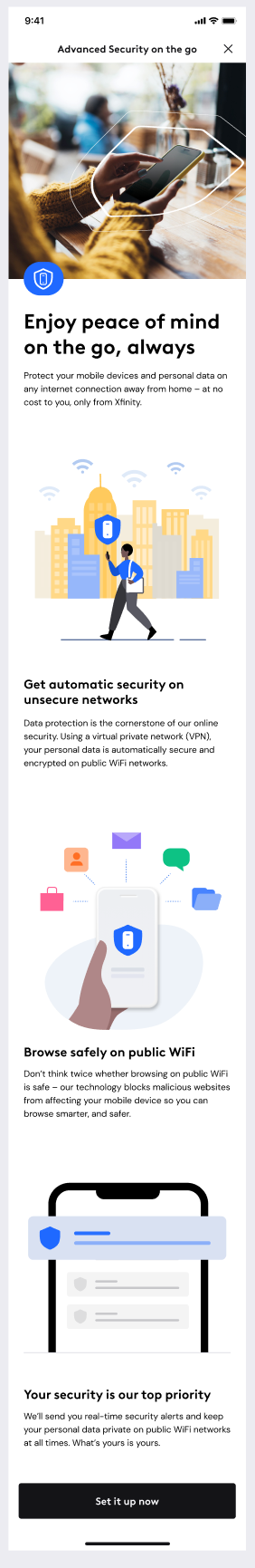 This learn page needed to reassure customers that by setting up a feature already included with their plan, they can protect themselves from bad actors, and retain their privacy and personal data no matter where they are using WiFi, particularly on unsecure networks.